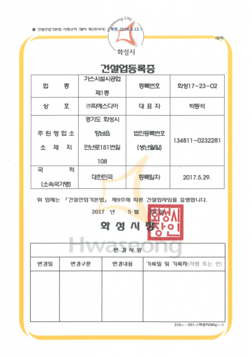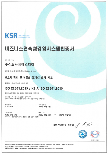 규범준수경영시스템(ISO 37301) 인증서 비즈니스연속성경영시스템(ISO 22301) 인증서 안전보건경영시스템(ISO 45001) 인증서 환경경영시스템(ISO 14001) 인증서 품질경영시스템(ISO 9001) 인증서 건설업등록증-가스시설시공업(제1종) 건설업등록증-기계설비공사업 특정설비제조 등록증명서 소재·부품·장비 전문기업확인서 벤처기업확인서 기업혁신형 중소기업확인서 기업부설연구소 인정서 유망중소기업인증서 대통령 표창 우수근로장학기관 인증서 중소벤처기업부 장관상